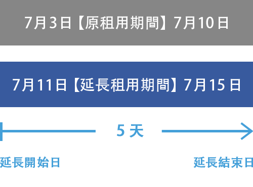 延長租期只能延長設備的租借時間,設備的流量不會增加。(每個月的月初可使用的流量將會清零重置。)